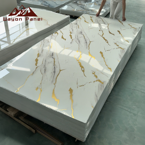 Wayon แผ่นผนังหินอ่อนทำจากวัสดุ PVC ผสมถ่านไม้ไผ่5มม. เคลือบเงาสำหรับการตกแต่งภายในที่เป็นมิตรกับสิ่งแวดล้อม
